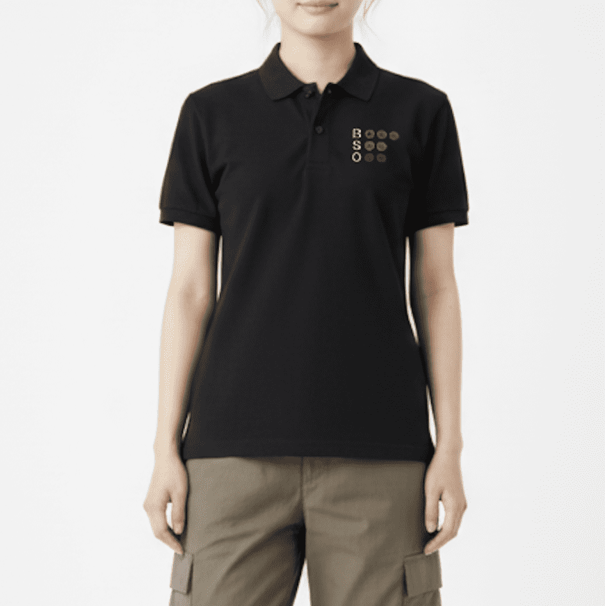 「BSO」のネオンサイン刺繍ポロシャツです。